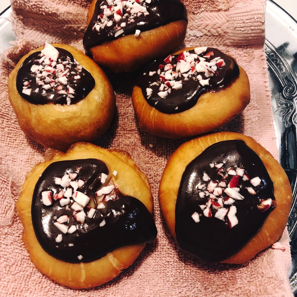 I don’t know about you, but we went crazy for donuts this Chanukah. I had hoped to post before the holiday started, but it got off to a hectic start at my house. I had a big work deadline the second day of Chanukah, so I was working extra hours in late November and early December; that didn’t leave me with any extra brainpower to think about a blog post of low-waste ideas for the holiday. And with all the donuts, I spent my usual writing time frying, filling, and frosting donuts. (A few nights we got so full on donuts nobody even wanted a latke!)